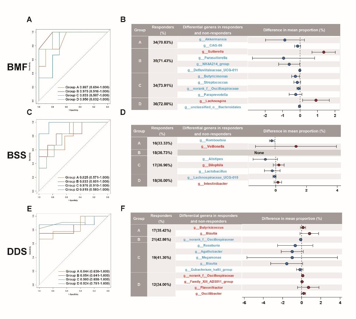 图3. 基线肠道菌群预测干预后便秘症状的改善