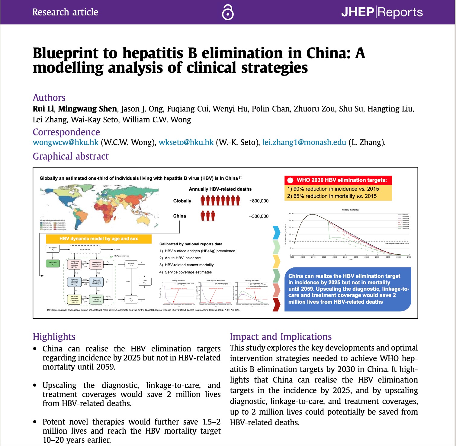 公共卫生学院博士生李瑞和沈明望副教授是本研究的共同第一作者,公共卫生学院张磊教授、香港大学深圳医院黄志威教授和司徒伟基教授是本研究的共同通讯作者。参与本研究的还有澳大利亚莫纳什大学Jason J. Ong副教授,北京大学公共卫生学院崔富强教授和世界卫生组织Hepatitis/HIV/STI高级顾问Po-lin Chan教授等。本研究受比尔及梅琳达·盖茨基金会、国家自然科学基金、国家重点研发计划、西安交通大学青拔人才项目等基金支持。