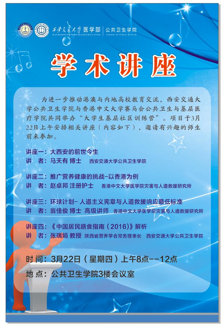 版权所有:西安交通大学医学部公共卫生学院 地址:陕西省西安市雁塔西路76号 邮编:710061 联系电话:029-82655101 029-82655135 Email:sph_xjtu@163.com