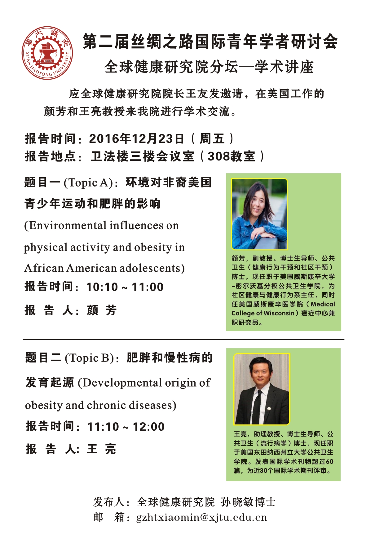 版权所有:西安交通大学医学部公共卫生学院 地址:陕西省西安市雁塔西路76号 邮编:710061 联系电话:029-82655101 029-82655135 Email:sph_xjtu@163.com