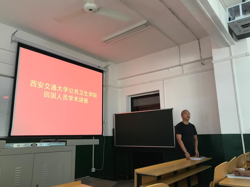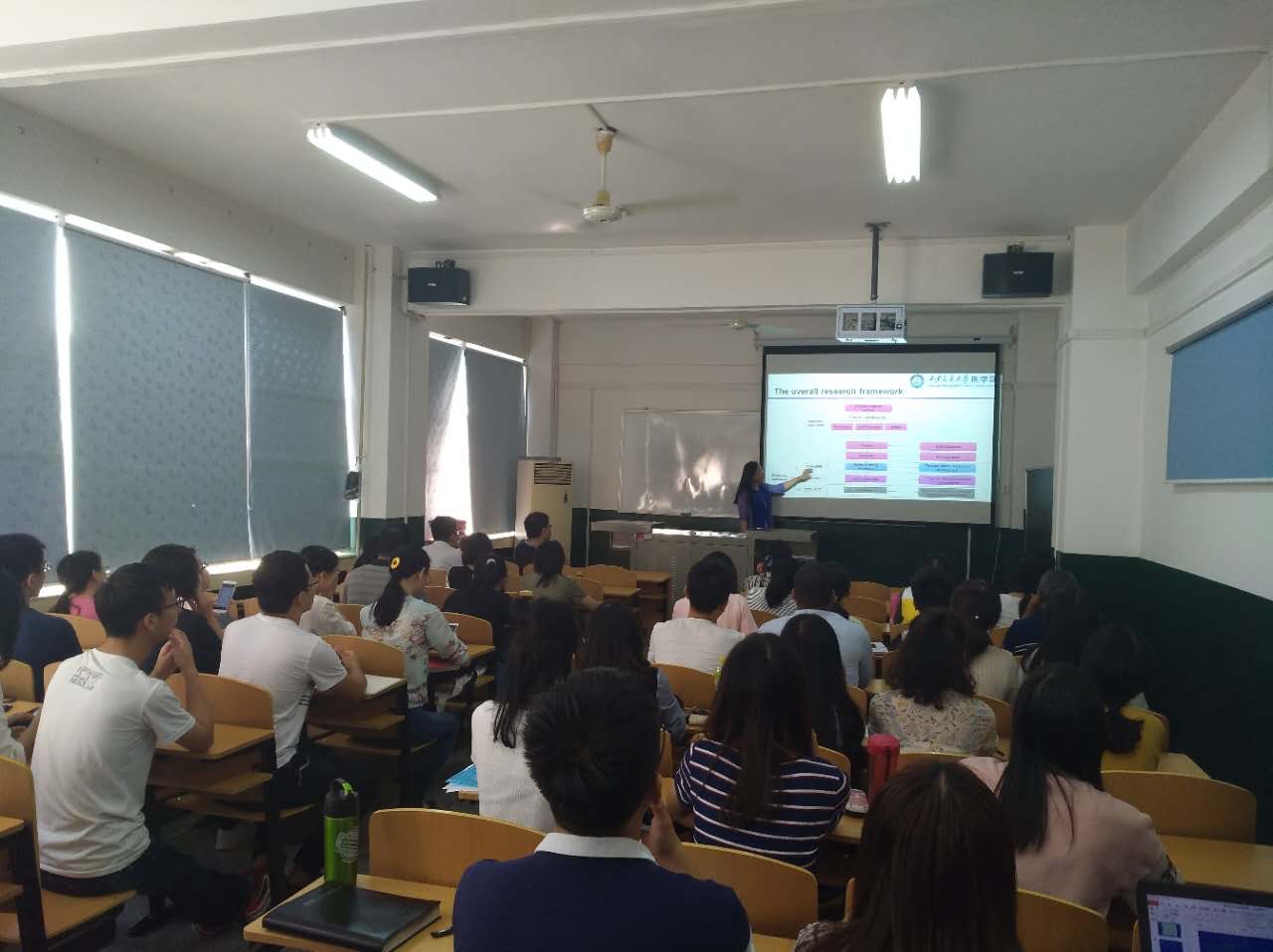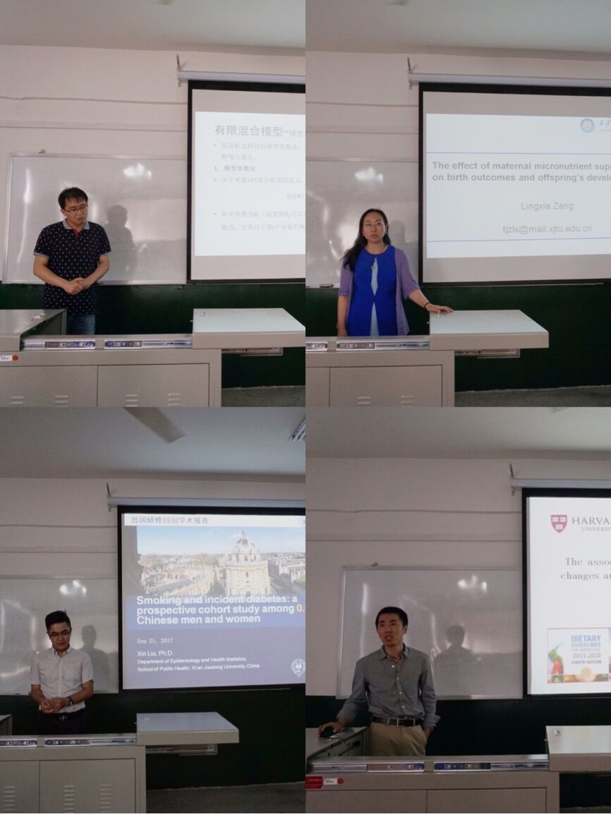 9月21日下午,公共卫生学院裴磊磊博士、曾令霞副教授、刘鑫博士和马乐副教授在学院三层教室进行访学归国学术报告会,与学院师生分享在国外访学期间的收货和体会,报告会由党少农副院长主持。
