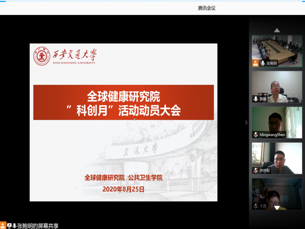 8月25日上午,全球健康研究院“科创月”动员大会在泓仁楼三楼大数据实验中心召开,腾讯会议同步进行线上直播,通过线上线下的会议形式争取将动员会覆盖到每一位学院师生,学院还特别邀请了2020级研究生新生参加线上会议了解科创月开展的相关情况。学院党政领导、“科创月”各项学术活动负责人全体参加线下会议,现场研讨、商议科创月相关工作的举措。
