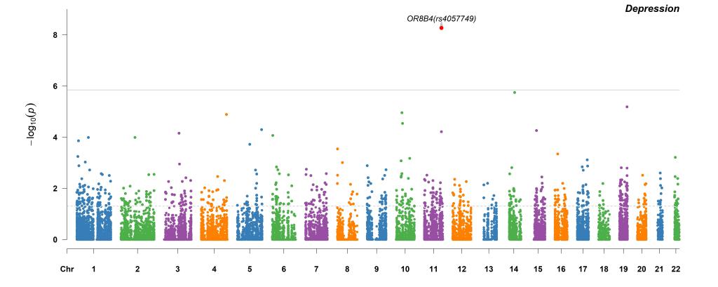 针对复杂疾病遗传异质性强,罕见变异频率低的难题,研究人员提出将复杂疾病多基因风险评分与全外显子组关联研究整合的分析策略。首先,利用既往大规模GWAS研究结果,计算个体复杂疾病多基因风险评分,然后采用极端表型抽样过滤多基因风险评分低的个体并重新定义疾病表型,使罕见遗传变异在研究样本中得到显著富集,部分解决了复杂疾病遗传异质性强,罕见变异频率低的难题。为了验证分析策略的有效性,研究人员利用公共UK Biobank队列发布的20万人的全外显子测序数据,进行了抑郁症的全外显子组关联研究,结果发现OR8B4等基因上的罕见遗传变异在抑郁症的遗传机制中发挥重要作用。该研究成果为复杂疾病相关罕见遗传变异鉴定提供了一种新的有效分析策略,显著提升了统计效力,同时也为揭示抑郁症的分子发病机制提供了新的重要科学证据。