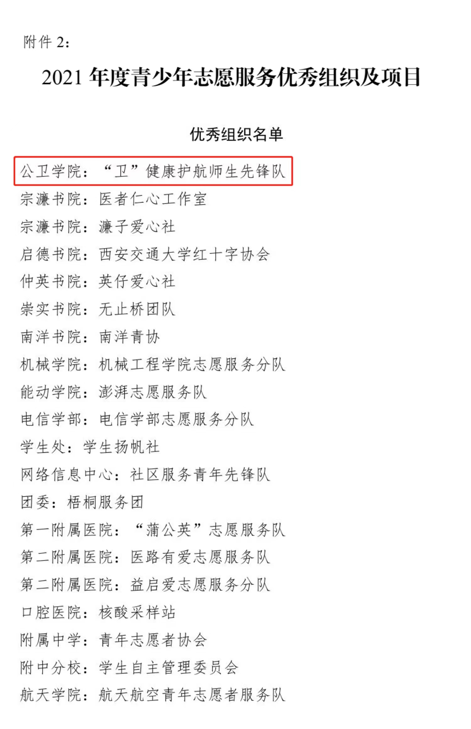 公共卫生学院2021年度青少年志愿服务获西安交通大学团委“优秀组织”等多项表彰