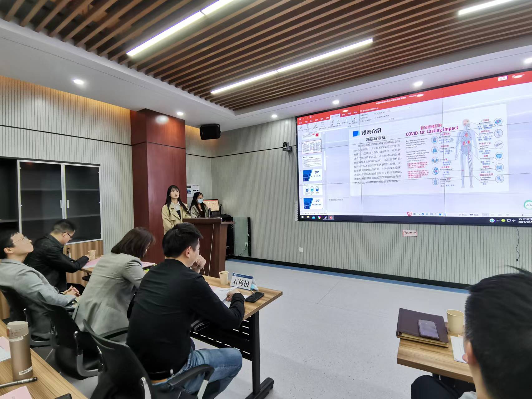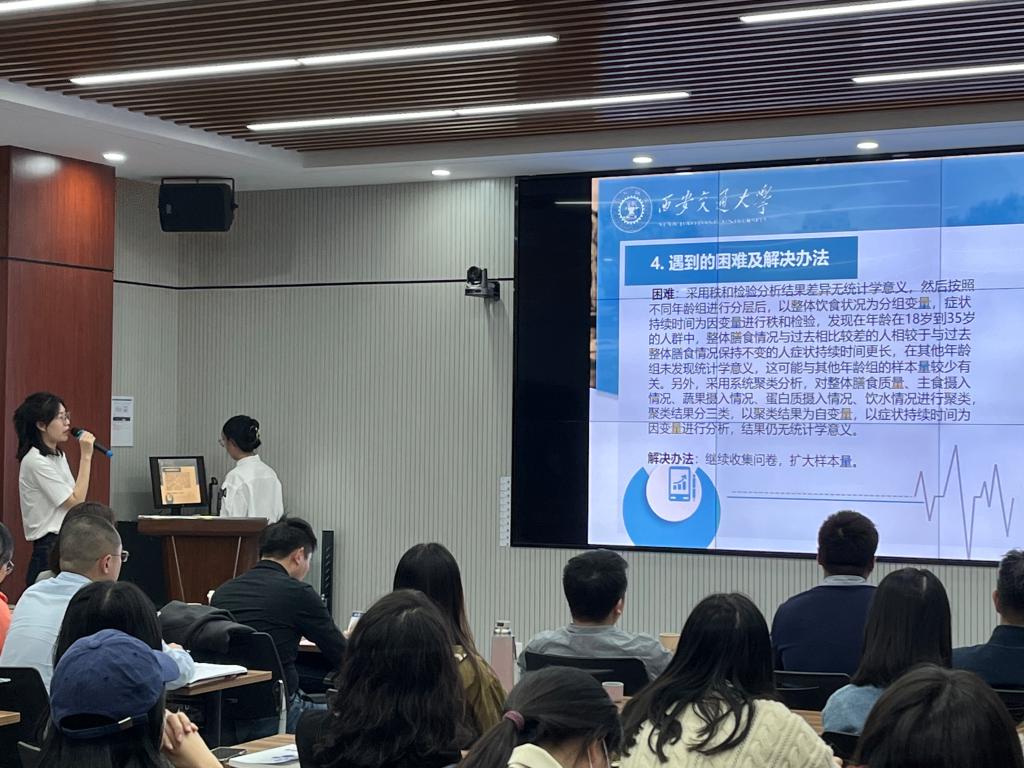 本次答辩会的社会实践主题涉及新冠患者阳性期间的膳食及生活方式调查研究,新冠防疫知识的认知、防控、知识来源调查,HPV疫苗知晓情况及接种意愿调查以及新冠后遗症调查研究。4支实践队伍依次从项目背景、实施流程、调研成果等方面进行了汇报。评审专家就各组实践活动的研究设计、数据的处理分析、研究深度、创新性等给出了专业点评与建议。