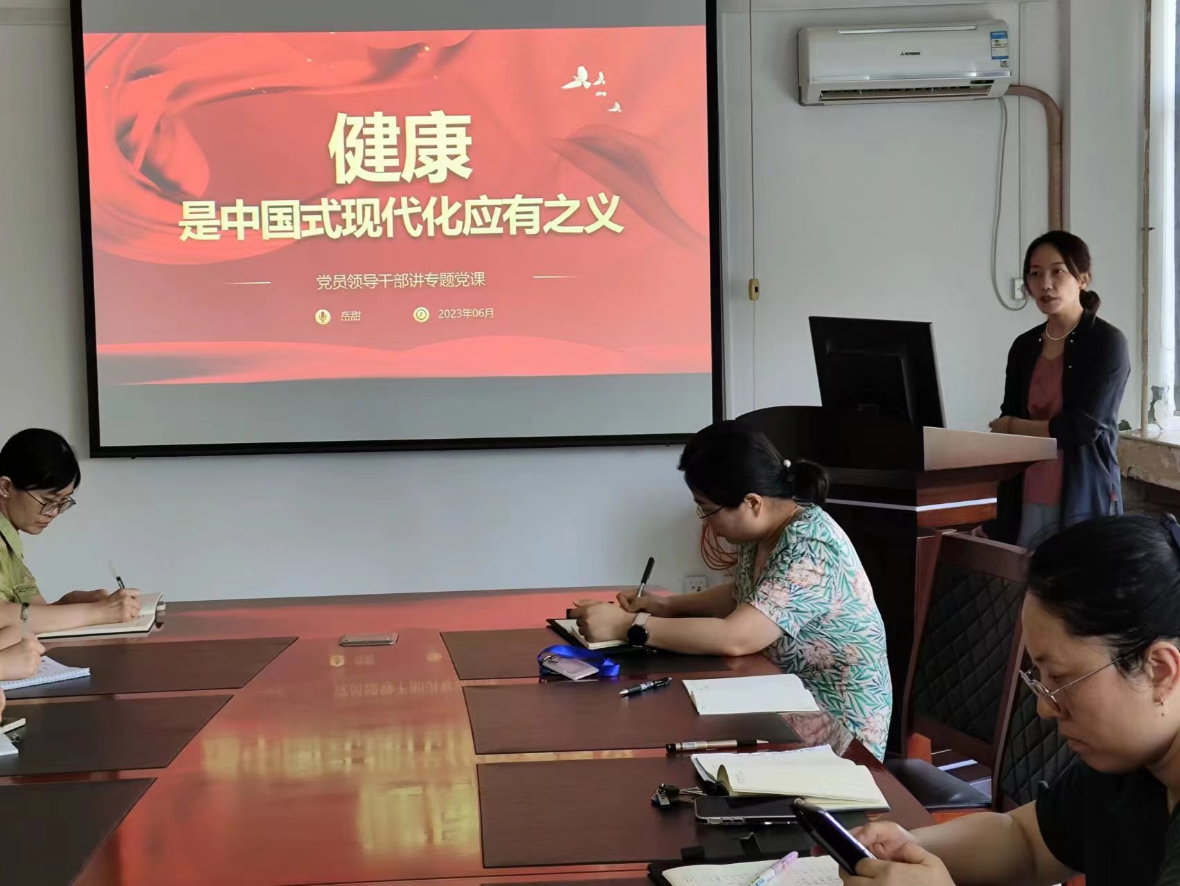 会议第二部分由党政领导干部讲授专题党课,学院党委副书记岳甜进行“健康是中国式现代化应有之义”专题党课,岳书记以抗击疫情中的榜样实例勉励支部党员,要不断提升科研能力,坚定专业自信,争做赋能当代公共卫生系统的中流砥柱,积极为打造一流的疾病预防控制体系、不断提升综合防控能力贡献力量,为中国式现代化建设保驾护航,义无反顾地投身到推进健康中国建设、促进全民健康的洪流之中,建功立业、作出贡献!