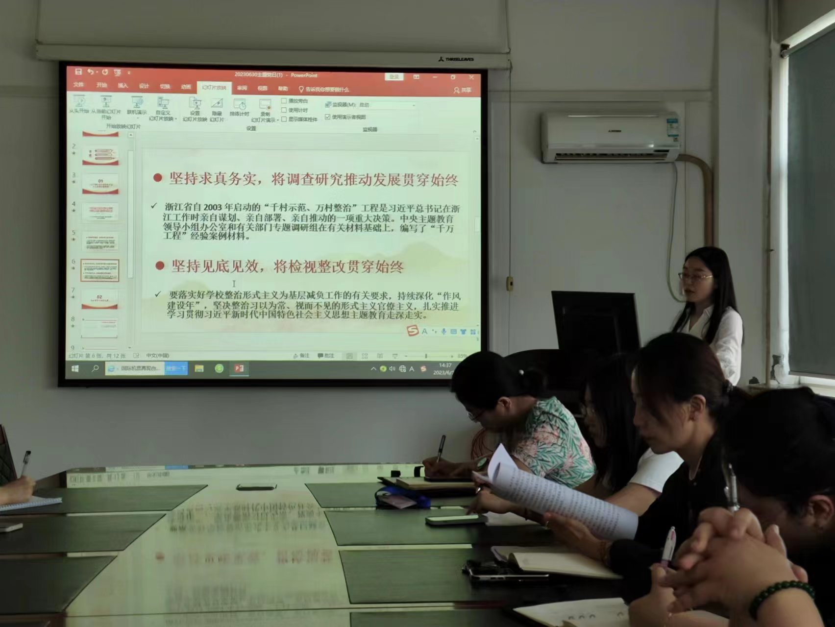 罗书记带领与会党员进行习近平新时代中国特色社会主义思想主题教育学习,结合实例,从坚持深学细悟,将理论学习贯穿始终;坚持求真务实,将调查研究推动发展贯穿始终;坚持见底见效,将检视整改贯穿始终三个部分进行学习。