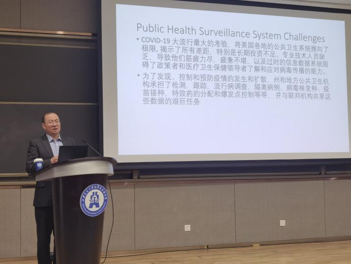 11月24日上午,美国内布拉斯加州卫生署疾病监测和信息化处处长、内布拉斯加大学医学中心公共卫生学院客座教授曲明博士应邀访问公共卫生学院,并于创新港5号巨构5-1E107开展了题为“公共卫生监测现代化和数字科学”的讲座。西安交通大学流行病与卫生统计学系副主任吴谦副教授主持讲座,公共卫生学院教师代表及全体研一学生聆听讲座。