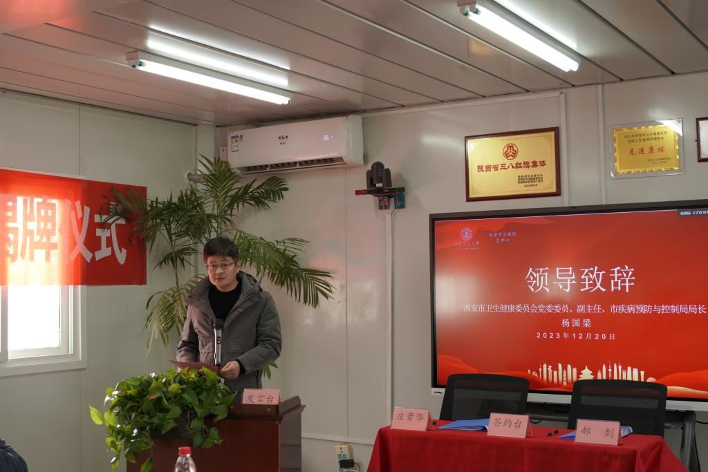 西安交通大学医学部常务副主任雷利利,西安市卫生健康委党委委员、副主任、西安市疾病预防控制局局长杨国梁,西安交通大学公共卫生学院党委书记、院长庄贵华教授,西安市卫生健康委科教处处长程婕,西安市公共卫生中心院长郝剑及有关嘉宾参加仪式,仪式由西安市公共卫生中心副院长李飞宇主持。
