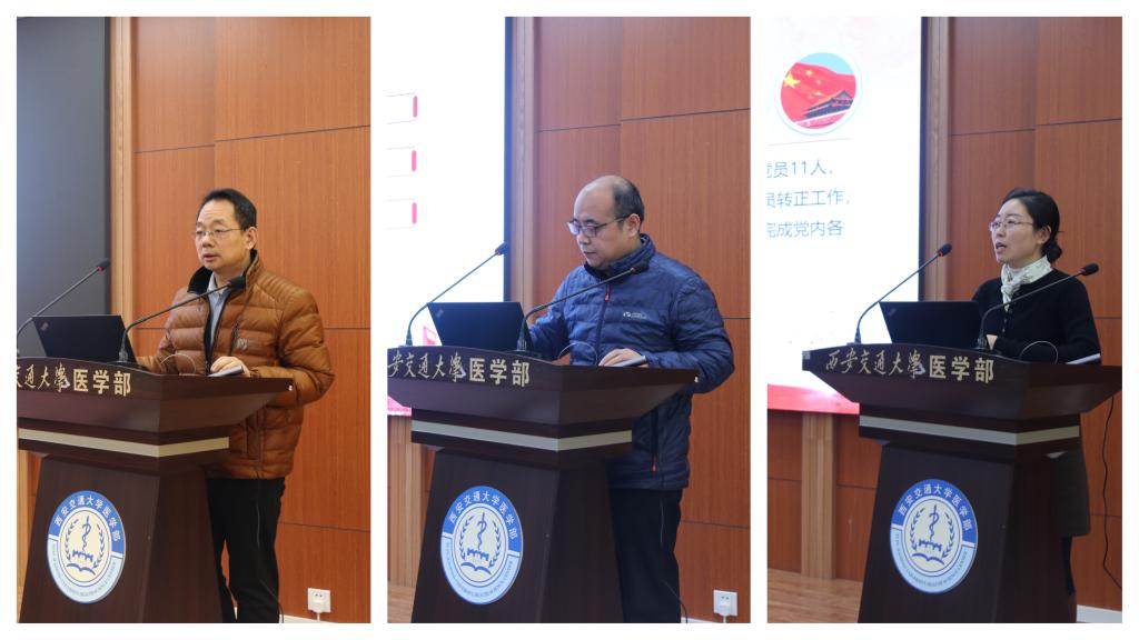 副书记岳甜、副院长张峰、副院长马乐分别就党建、学生管理、科学研究、国际交流与合作、人才培养等工作进行述职述廉汇报。第一、二、三师生联合党支部书记吴谦、石兴民、罗小琴从教育党员、管理党员、监督党员、组织师生、宣传师生、凝聚师生、服务师生、推动改革发展等方面进行党支部工作述职汇报。
