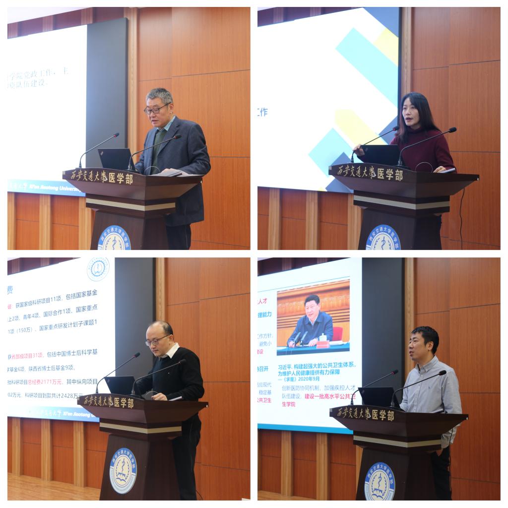 庄贵华院长代表班子从政治思想建设、领导能力、工作实绩、党风廉政建设、作风建设等5个方面进行述职述廉,并进行个人述职述廉。2023年度学院聚焦重点工作,突出党建引领,圆满完成各项工作任务,软科排名进一步提升,由2022年全国15位提升至2023年全国11位。与中国疾病预防控制中心等签署战略合作协议,全方位扩大对外交往,推动高水平公共卫生学院建设;新增国家优秀青年科学基金项目1项,国家优秀青年科学基金项目(海外)1项,新进教职工9名,师资队伍人数稳中有升;获国家教学成果奖二等奖1项,申报全国首批公共卫生博士(DrPH)专业学位授权点,已通过校学位授权自主审核;全面总结20余年来公共卫生专业学位研究生教育教学经验和成果,“树大健康观 强公卫能力 高层次应用型公共卫生人才培养体系创立与实践”获西安交通大学教学成果(研究生)奖特等奖,并被推荐申报陕西省高等教育(研究生)教学成果奖;获批国家重点研发计划国际合作重点专项等科研项目,在BMJ、Lancet Infectious Diseases、European Heart Journal、Lancet Global Health等本领域国际著名期刊发表科研论文;主办、承办环境与健康学术会议、健康中国-消除健康不均衡高峰论坛等大型全国性/国际学术会议,扩大学科影响力。