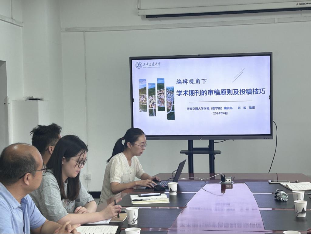 随后,西安交通大学期刊中心张敏编辑开展了题为《编辑视角下学术期刊的审稿原则及投稿技巧》的讲座,从审稿流程、审稿规则及标准与投稿技巧等方面详细讲授。张敏编辑提到,同行评议是投稿的重要环节,重点围绕学术价值和文章撰写两方面进行,主要关注选题前沿性、内容合理性、结果科学性、表达规范性、摘要的信息量和文献引用规范。此外,对于审稿人的审稿意见,应以礼貌尊重的口吻先概述后提供全套意见答复,逐一回复审稿人和编辑,使回应自成一体。