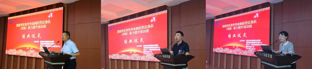 在培训班结业仪式上,公共卫生学院副院长马乐代表学院向圆满完成培训任务的学员们表示热烈的祝贺。他强调,公共卫生事业关乎人民健康和社会稳定,作为国家突发急性传染病防控应急队队员,学员们肩负着重要的责任和使命。希望各位学员能够将在培训班中学到的知识和技能运用到实际工作中,为保障人民健康、推动公共卫生事业发展贡献自己的力量。来自河南省疾控中心的张叶代表学员发言。她表示,在交大学习期间,交大老师们以深厚的学术功底、严谨的治学态度,为大家带来了一堂又一堂精彩纷呈的课程。无论是理论知识的传授,还是实践操作的指导,老师们都耐心细致、不厌其烦,使他们受益匪浅。河南省疾控局二级调研员张先波代表河南省疾控局讲话,感谢承办单位的精心组织,充分肯定了本次培训班的教学成果。