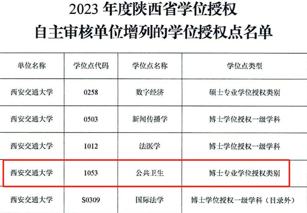 近日,国务院学位委员会发布《关于下达2023年度学位授权自主审核单位撤销和增列的学位授权点名单的通知》(学位〔2024〕24号),西安交通大学公共卫生学院正式获批公共卫生博士专业学位授权点,预计将于2025年迎来首批公共卫生专业学位博士。