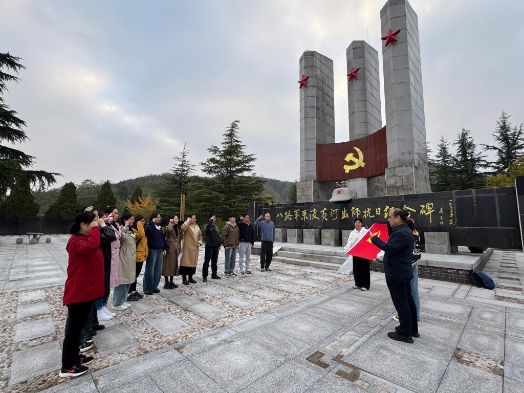 八路军东渡黄河出师抗日纪念碑由三片高大、雄浑的竖向碑体和八个船型基座组成,碑身庄严挺拔,曲面党徽将三个主碑紧密联系在一起,寓意八路军三个主力师由党统一领导是取得胜利的保证。在纪念碑下,第二师生联合党支部党员列队整齐、举起右拳,以饱满的热情和昂扬的姿态,面向党旗庄严宣誓。党员们接受了一次深刻的精神洗礼,表达了为党的事业奋斗的决心和信念。