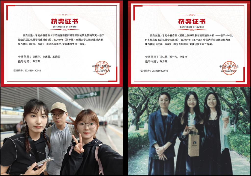 近日,2024年(第十届)全国大学生统计建模大赛圆满落下帷幕,我院预防医学专业2021级本科生张烁华、徐艺涵、王诗琪组成的参赛队获得陕西省赛区本科生组一等奖,我院流行病与卫生统计学专业2023级研究生冯红曼、符一凡、李星艳获陕西省赛区研究生组三等奖,两队指导老师均为我院流行病与卫生统计学系陈方尧副教授。