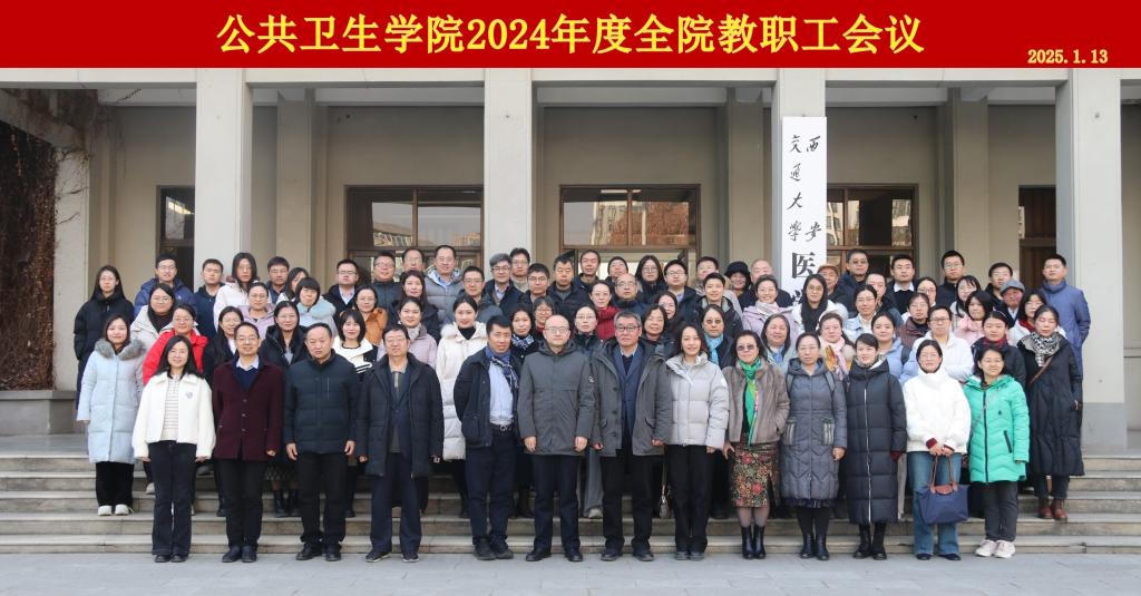 1月13日,公共卫生学院召开2024年度全院教职工大会,全面总结2024年度学院工作,安排部署2025年工作重点,进行学院领导班子、处级干部、教工党支部书记述职评议?;嵋橛裳г菏榧羌嬖撼ぷ蠡淌谥鞒?。